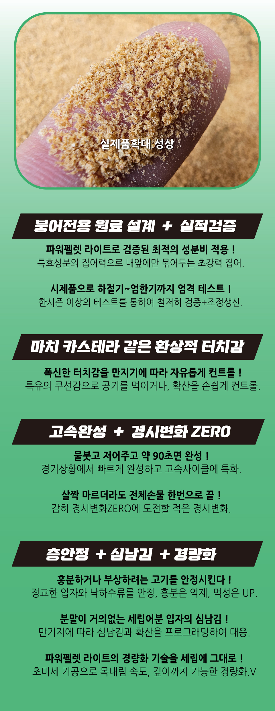 파워펠렛 라이트의 개발직후부터 계속해서 테스트해오던 제품입니다. 하절기와 엄한기 테스트를 모두 마침에 드디어 최적의 배합비와 입도로 찾아뵙게 되어 기쁩니다.